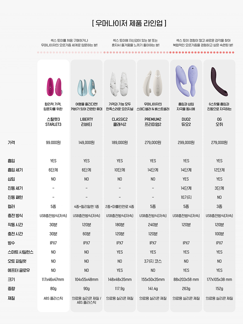 클리위에 살포시 닿기만 해도 너무 잘 느끼더군요. 덕분에 10분,20분 공들여야 했던 애무시간이 확 줄었습니다. 우머나이저 사용후 관계시 쾌감은 평소의 몇배로 느낀다고 하네요.