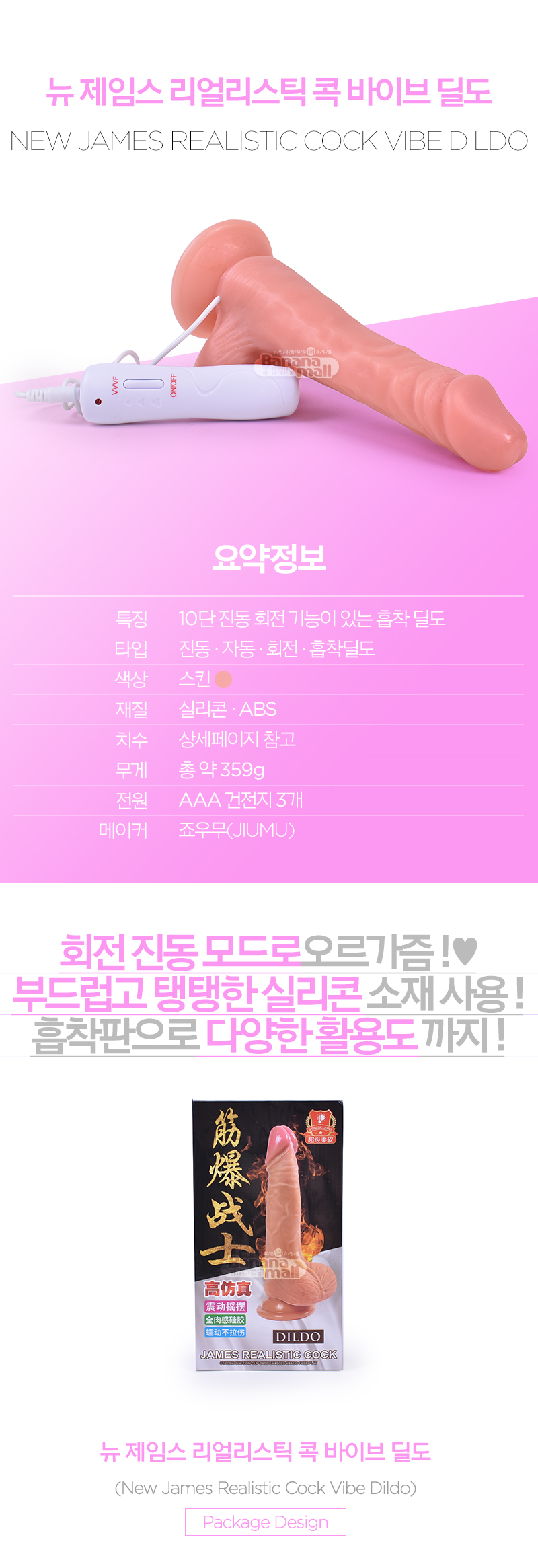 [10단진동+회전] 뉴 제임스 리얼리스틱 콕 바이브 딜도(New James Realistic Cock Vibe Dildo) - 죠우무(JM307) (JWM)