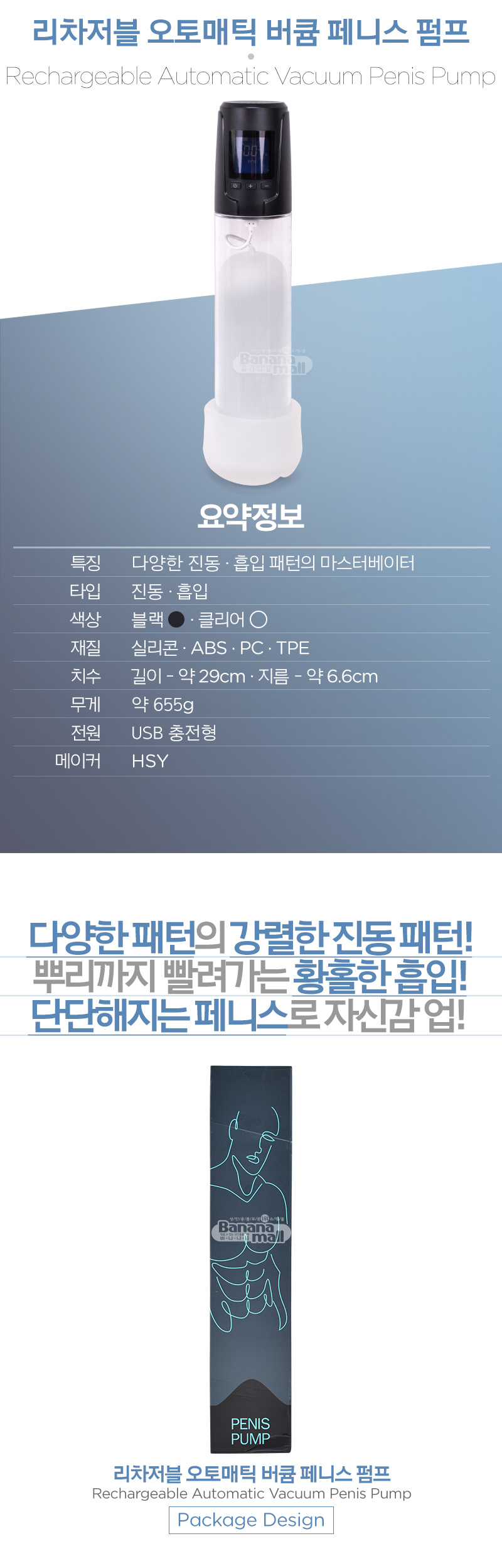 [흡입 진공 자위+진동] 리차저블 오토매틱 버큠 페니스 펌프(Rechargeable Automatic Vacuum Penis Pump) - HSY(20068) (HSY)