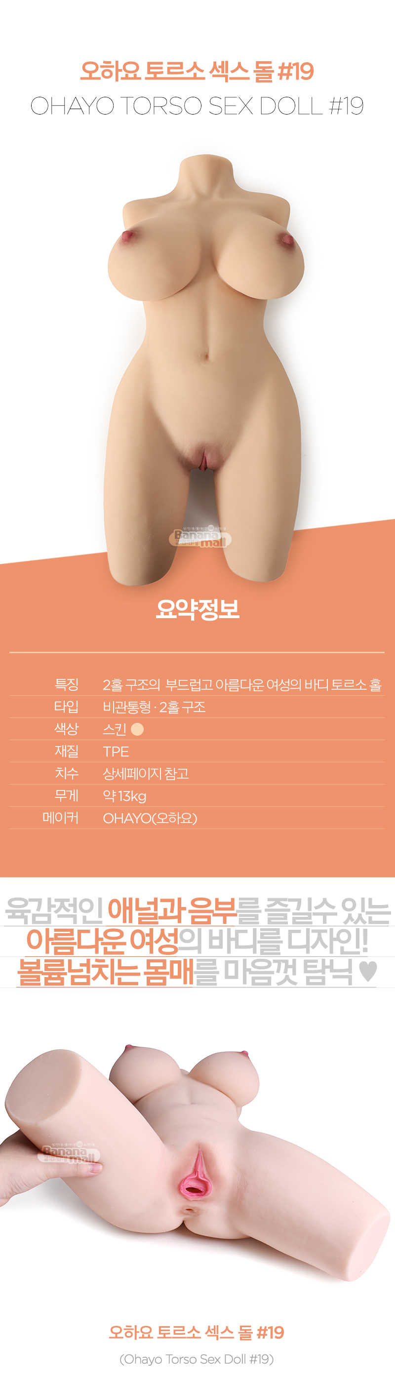 [토르소 홀] 오하요 토르소 섹스 돌 #19(Ohayo Torso Sex Doll #19) - 13kg/오하요(NYJK-0036) (OHA)