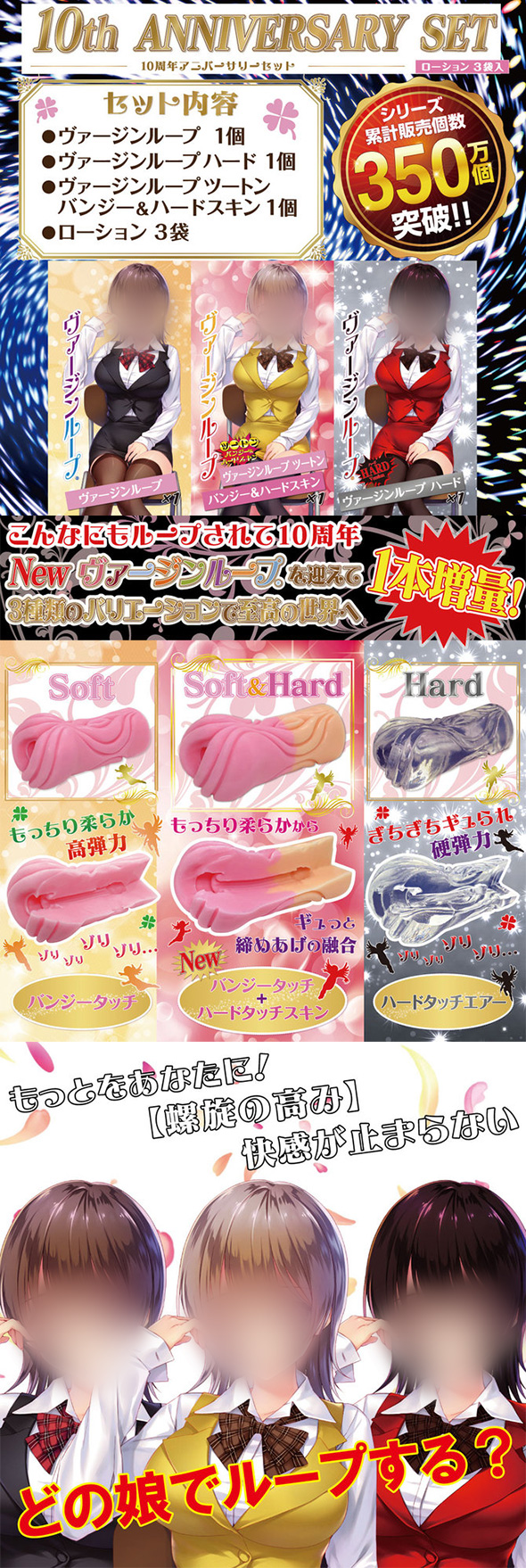 라이드 재팬이 있게끔해준 메가 히트급 오나홀 시리즈, 버진 루프! 그 버진 루프가 올해 10년째를 기념해 오나홀 3종이 포함된 패키지를 발매했습니다.