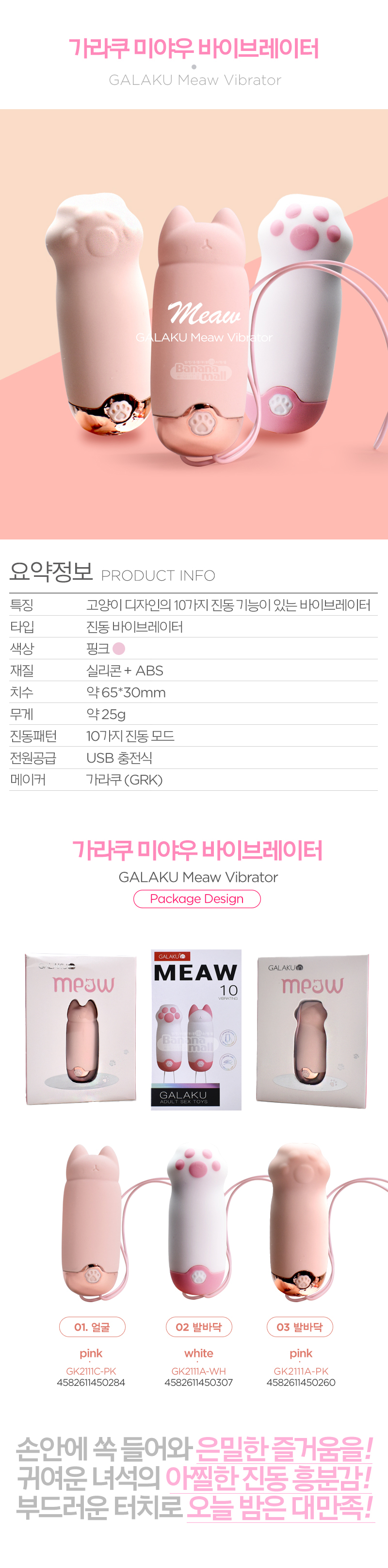 [10가지 진동] 가라쿠 미야우 바이브레이터(GALAKU Meaw Vibrator)- 가라쿠(4582611450284) (GRK)