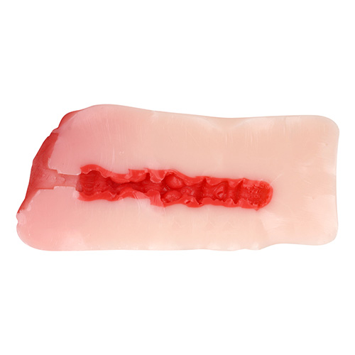 • 내부구조 단면도. 외부와는 다른 색상의 핑크빛 실리콘 소재로 제작되어 속살에 파고드는 느낌을 주며,올록볼록한 질벽 구조가 페니스를 유기적으로 주무르는 것 같은 쾌감을 줍니다.