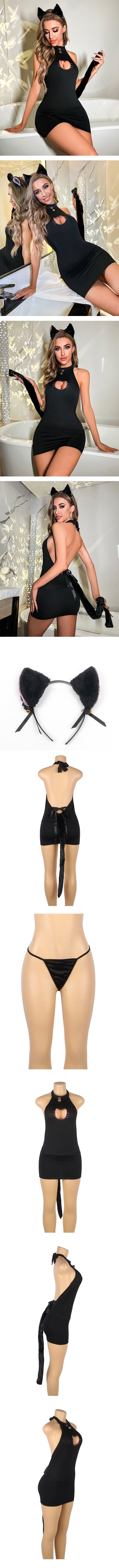 블랙 섹시 캣 걸 코스튬 세트 , 코스프레