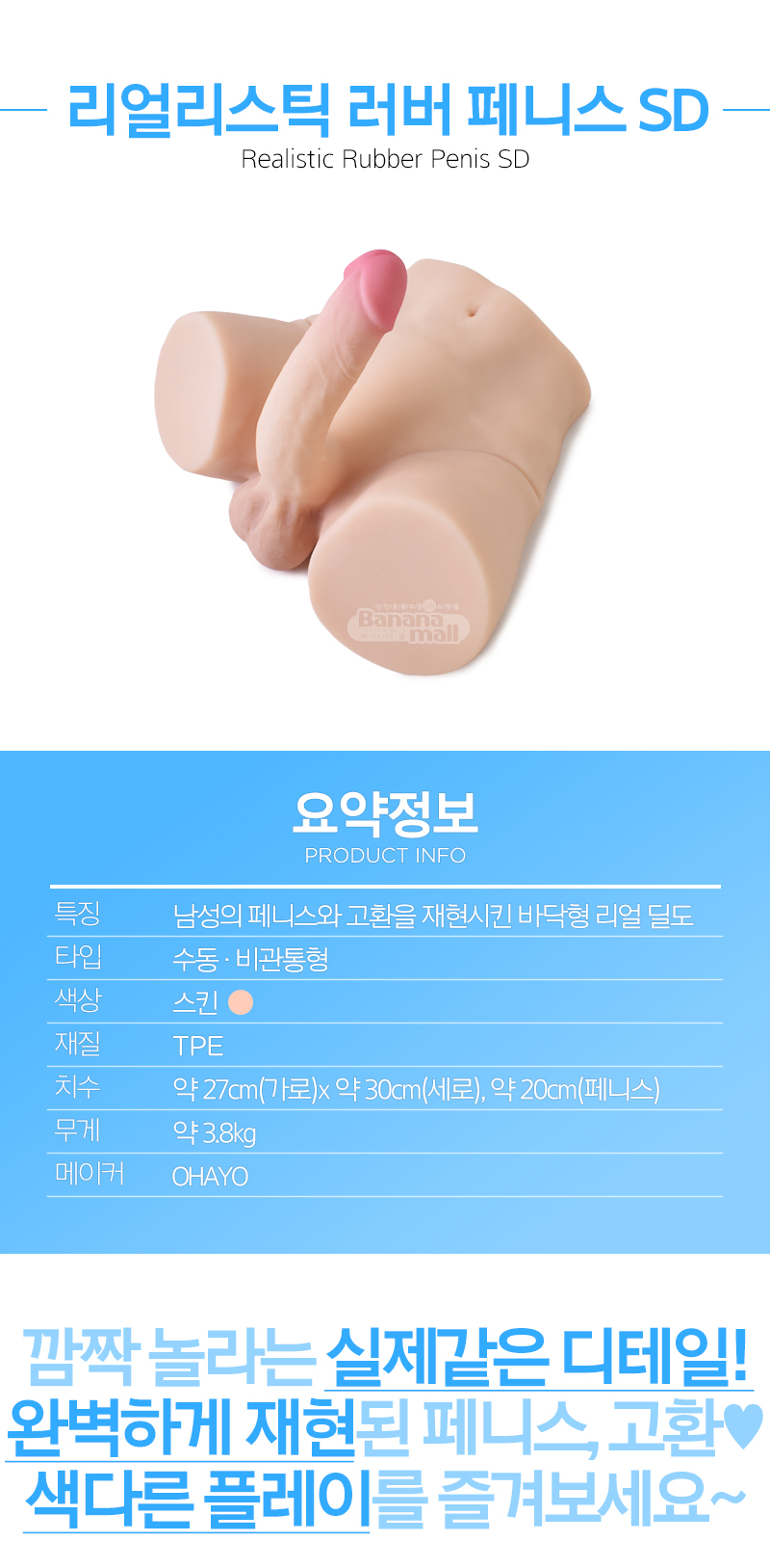 [리얼탄력] 리얼리스틱 러버 페니스 SD(Realistic Rubber Penis SD) - 오하요(NYJK-0034) (OHA)