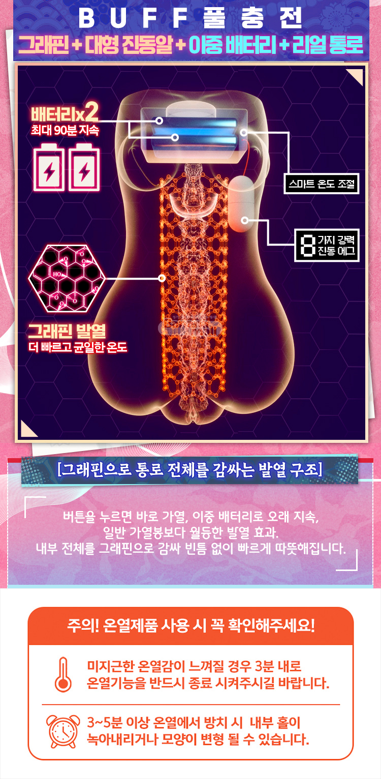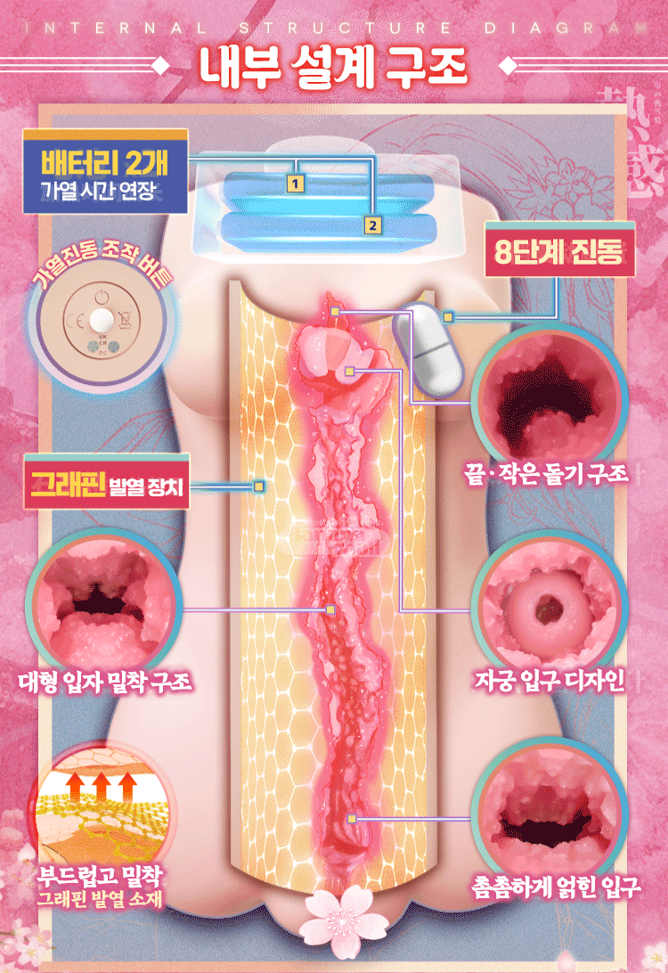 따끈따끈 페니스를 데워지는 온열 기능과 사실적인 내부 돌기와 결합한 8가지의 진동 패턴이