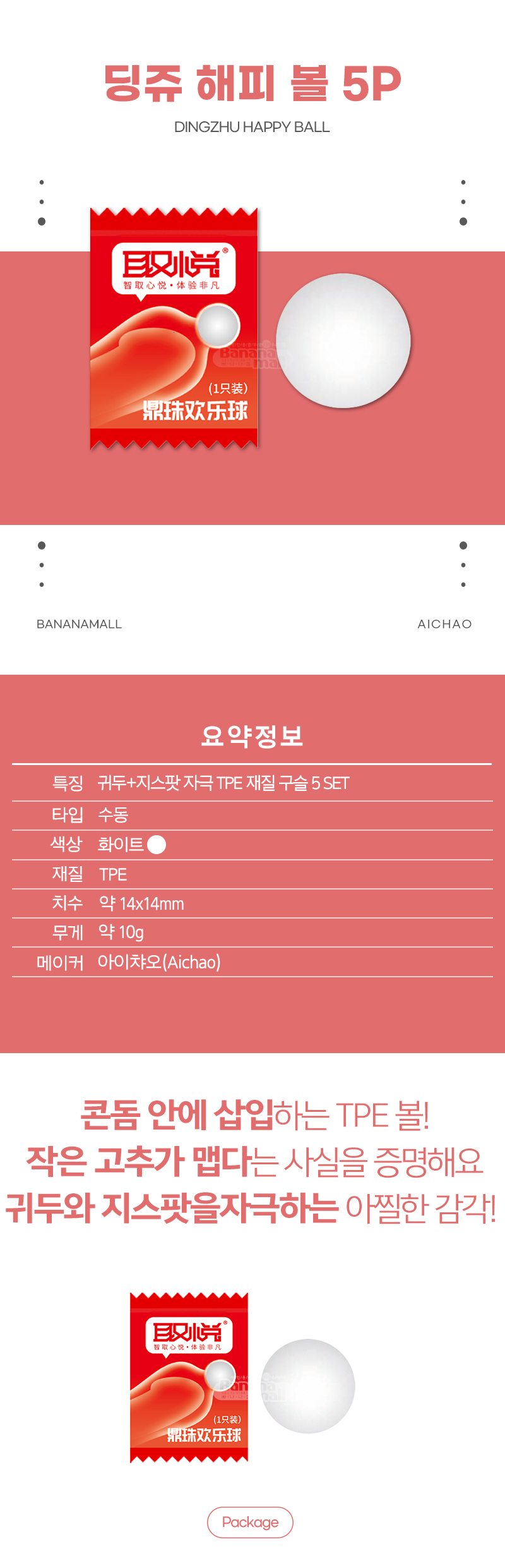 [귀두+지스팟 자극] 딩쥬 해피 볼 5p (Dingzhu Happy Ball) - 아이챠오(LN0793)(6922359307200) (ICH)
