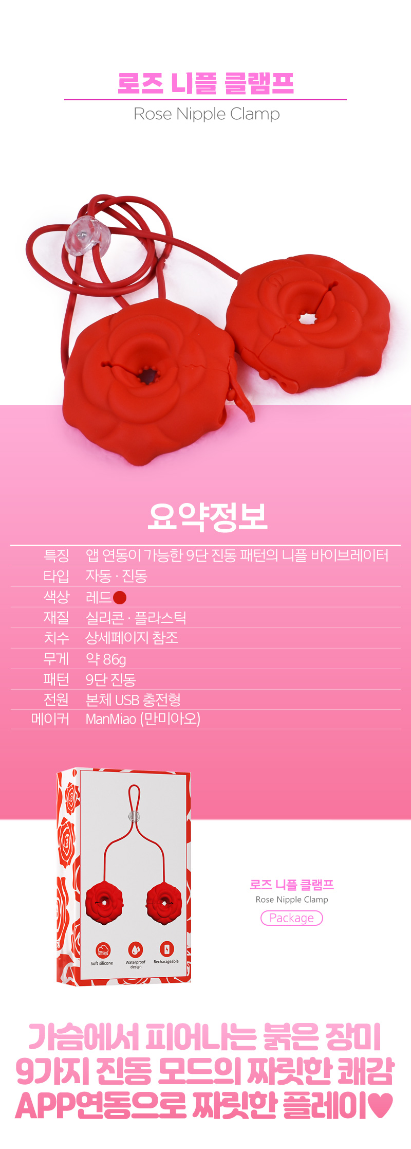 [9단진동] 로즈 니플 클램프(Rose Nipple Clamp) - 만미아오(W36/6973736552560) (MMA)