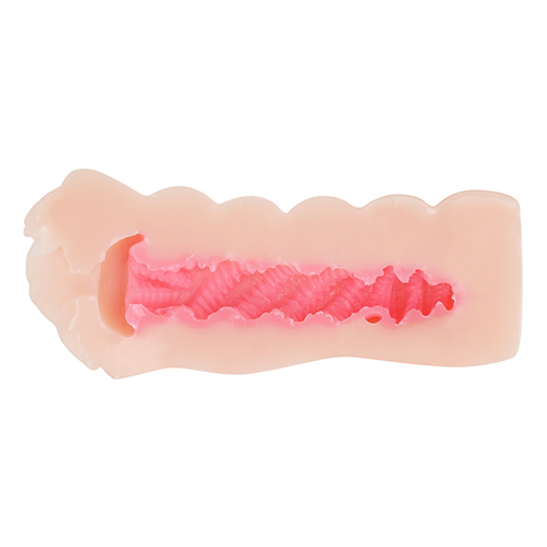 내부는 꽉 차는 느낌의 좁은 구경, 로션 누수를 방지하는 구역부터 네 번 감긴 나선형 굵은 주름에는 깊은 홈이 새겨져 감싸듯 얽히며, 최심부 부근은 주름과 좁아지는 구경으로 확실히 사정감을 높이는 구조입니다.