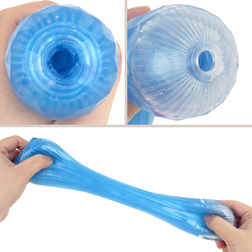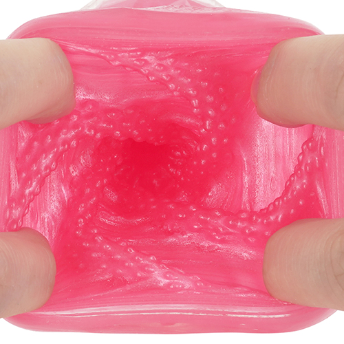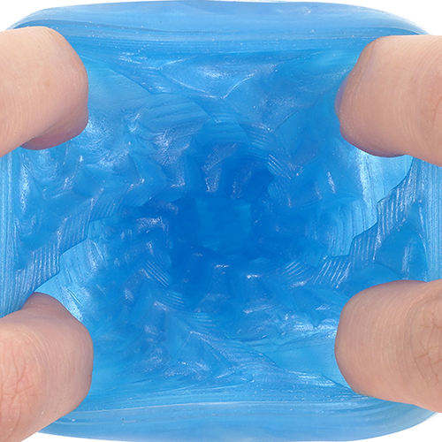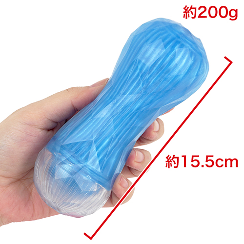 아우터 소재는 하드한 촉감의 투명한 크리스탈 층. 이너 소재는 부드럽고, 물만으로 미끌미끌 촉촉해지는 플러스 웨트 층. 2종류의 층 소재를 사용하여 '쫀쫀하면서도 탄력 있는' 촉감을 구현. 관통의 자극과 비관통의 감싸는 느낌, 그 양쪽을 융합한 새로운 감각 구조.
