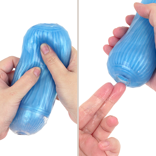 로션을 사용하는 경우와는 다르게, 내부 구조의 홈을 메우지 않고, 요철의 자극을 확실하게 느낄 수 있습니다. 선단을 통과할 때마다 내측의 젤이 외측의 젤에서 벗겨지면서, 쿠포하고 느껴지는 신기한 자극 체험을 즐길 수 있습니다.