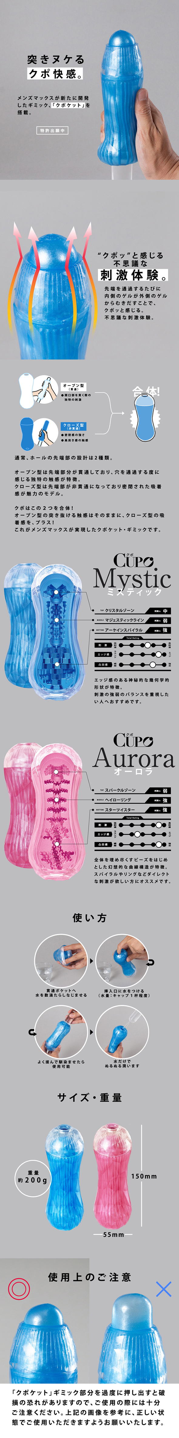 관통형과 비관통형의 쾌감을 하나로 합친 '쿠포켓' 기믹을 탑재한 새로운 감각의 오나홀! 관통형의 쿠포하고 뚫리는 그 감각을 비관통으로 구현한 선단 구조가 특징이며, 2종류의 내부 구조 타입에서 선택할 수 있습니다!