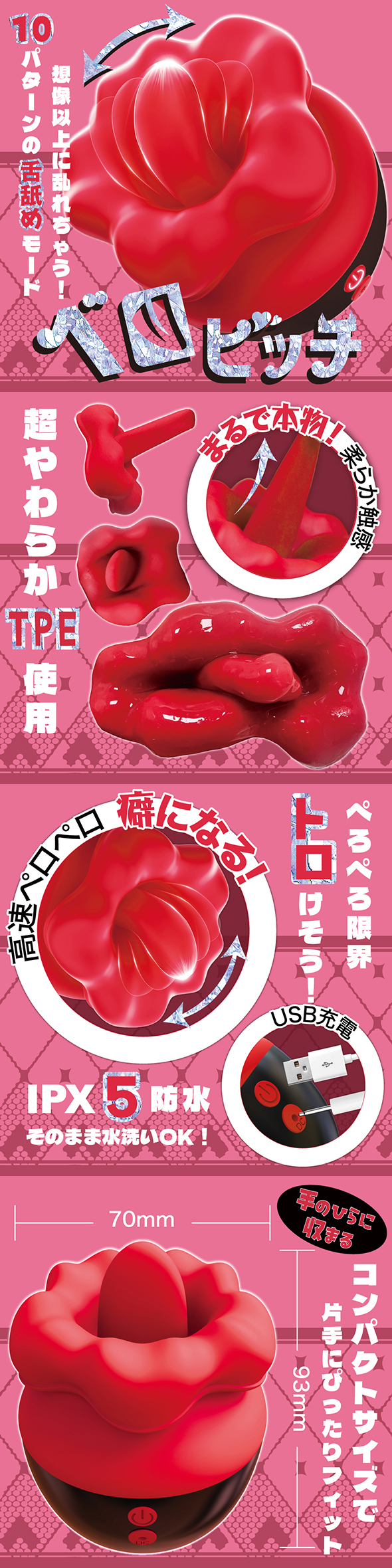 엘라스토머계 소재를 사용하여 매우 부드러운 리얼 감촉의 혀가 일품! 고속으로 자극받으면 외부 쾌감도 손쉽게♪ 혼자만의 아이템으로, 섹스의 애무 굿즈로도 즐길 수 있습니다!