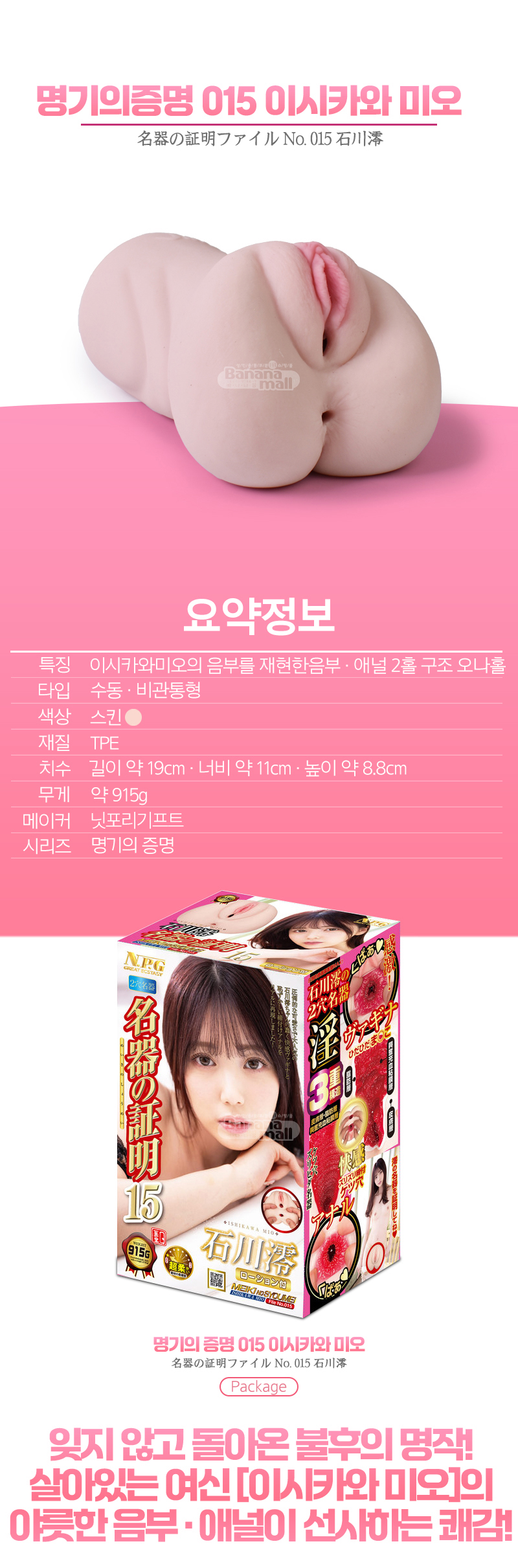 [남자의단련][일본 직수입] 명기의 증명 015 이시카와 미오(名器の証明ファイル No.015 石川澪) - 국내 최초 신작 판매 (NPR)