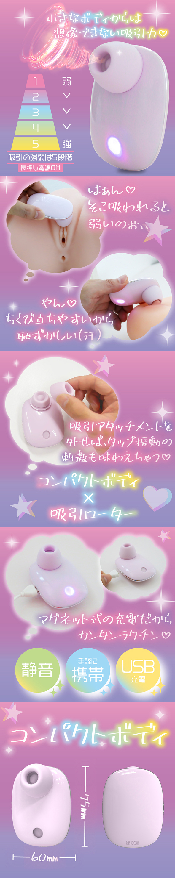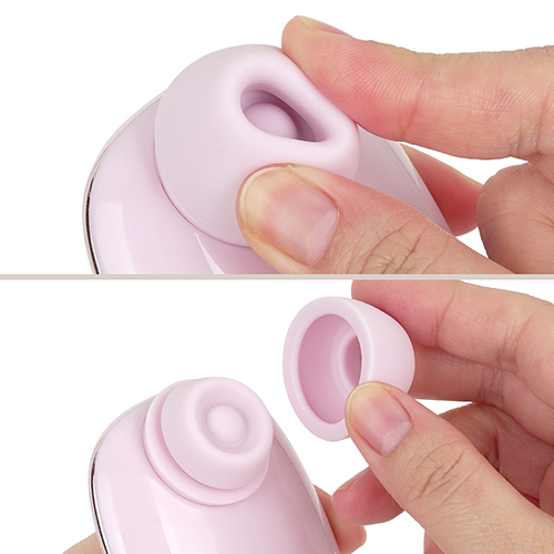 키스하듯 달라붙는 유사 오럴 같은 클리 자극을 즐길 수 있는 흡입 굿즈! 흡입구를 분리하면 톡톡 노크하는 듯한 태핑 로터로도 변신!