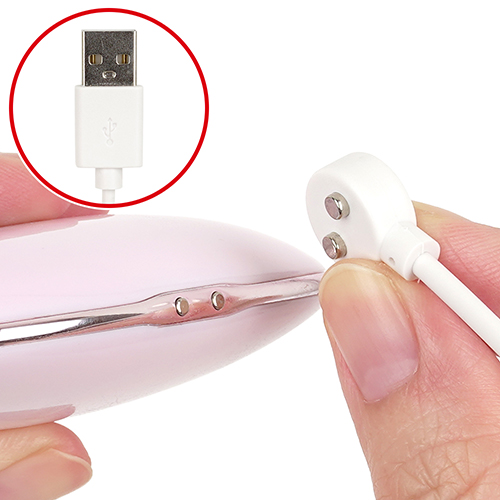 부속된 마그넷식 USB 충전 케이블을 본체의 마그넷 부분에 부착하여 충전해 주십시오. 충전 중에는 버튼이 깜빡입니다.