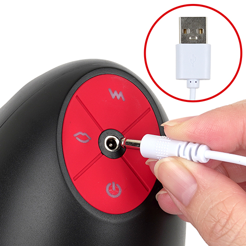 조작 패널 중심에 있는 돌기를 뽑으면 충전 구멍이 있습니다. 여기에 부속된 충전 케이블의 핀 끝을 꽂고, 다른 한쪽을 USB 전원에 꽂으면 충전을 시작합니다. 약 120분 충전으로 최대 약 55분 연속 사용이 가능합니다. 충전 중에는 버튼이 깜박이고, 만충전 시 점등합니다.