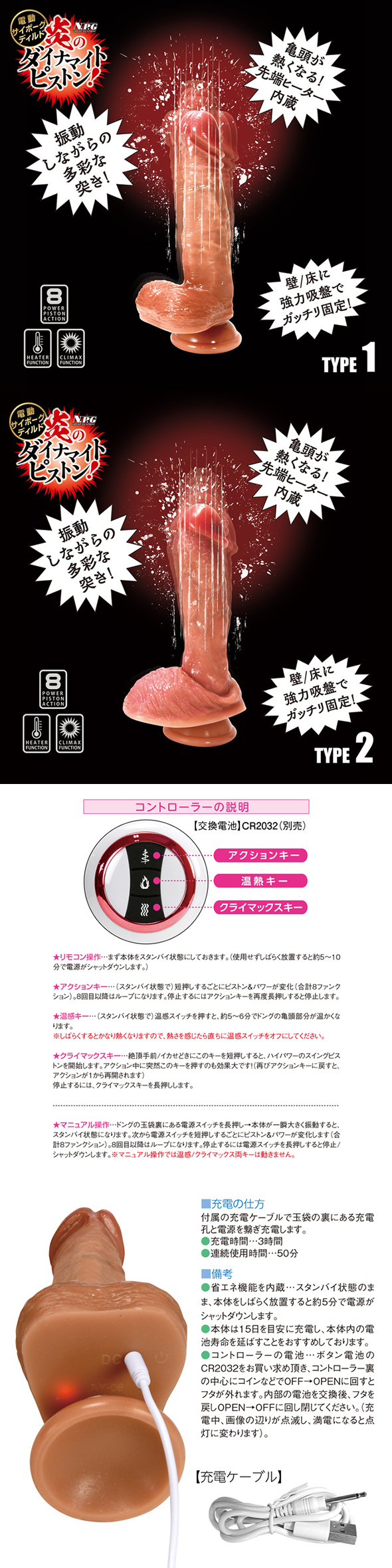 8종류의 액션 패턴을 탑재. 본체에서의 매뉴얼 조작으로는 온감/클라이맥스 키는 움직이지 않습니다.