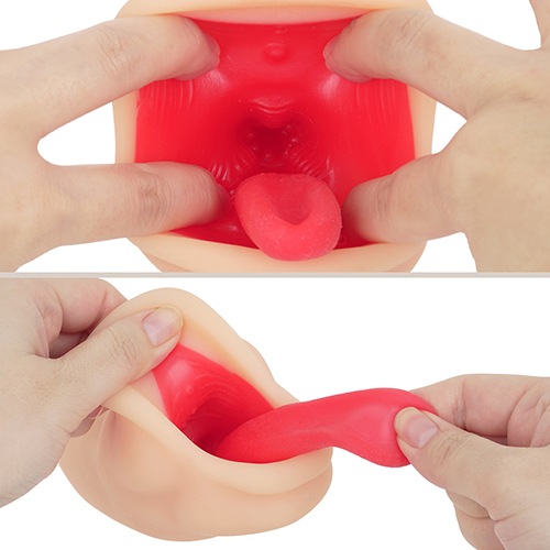 입이 크게 벌어지므로 발기가 약해도 입술 끝부분만으로 충분히 즐길 수 있습니다. 오목하고 두툼한 혀는 밑면부터 전체를 확실히 핥습니다.