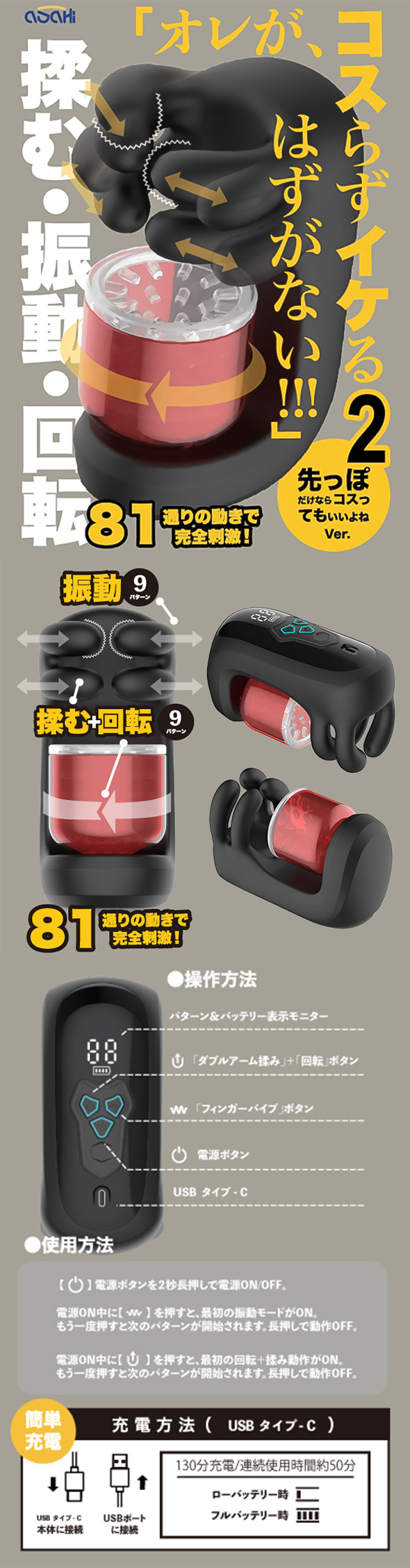회전에 의한 마찰이 메인이 아니라 주무름과 진동을 포함한 '삼위일체의 쾌감'이야말로 이번 작품의 특징입니다. 이 밸런스가 매우 훌륭합니다.