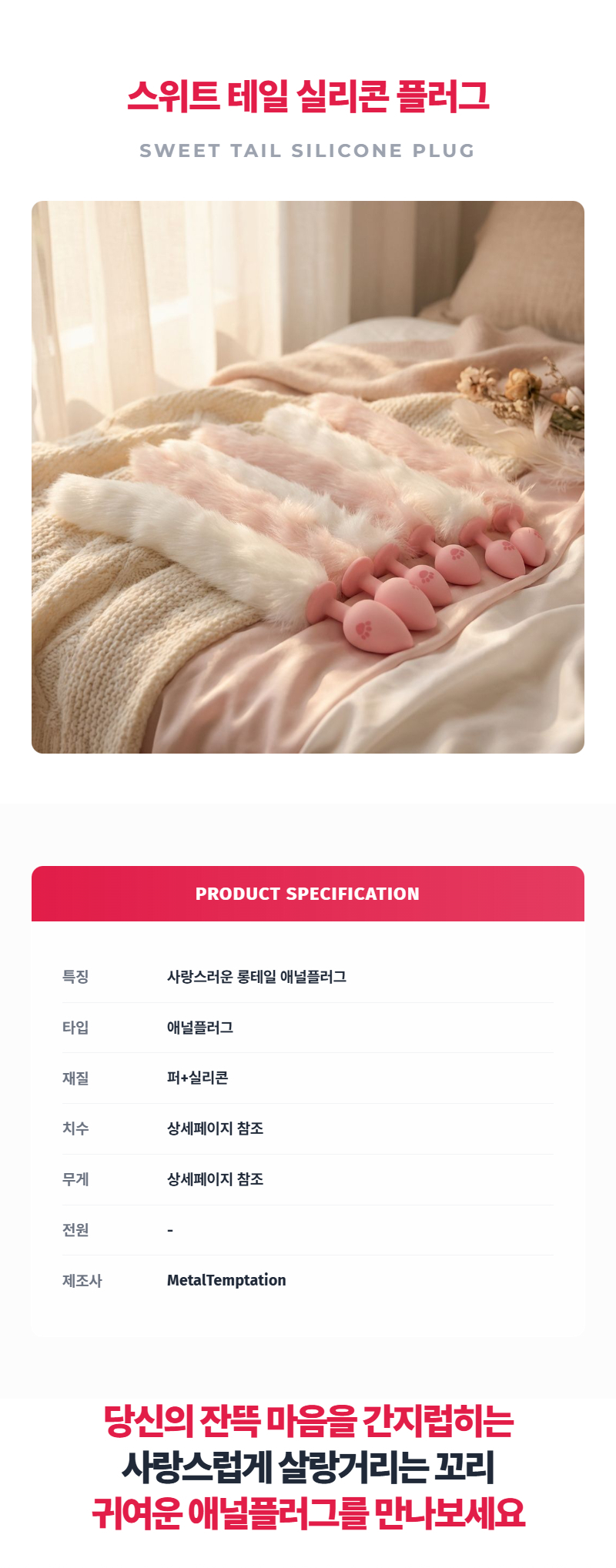사랑스럽게 살랑거리는 꼬리 디자인으로 귀여운 분위기 연출