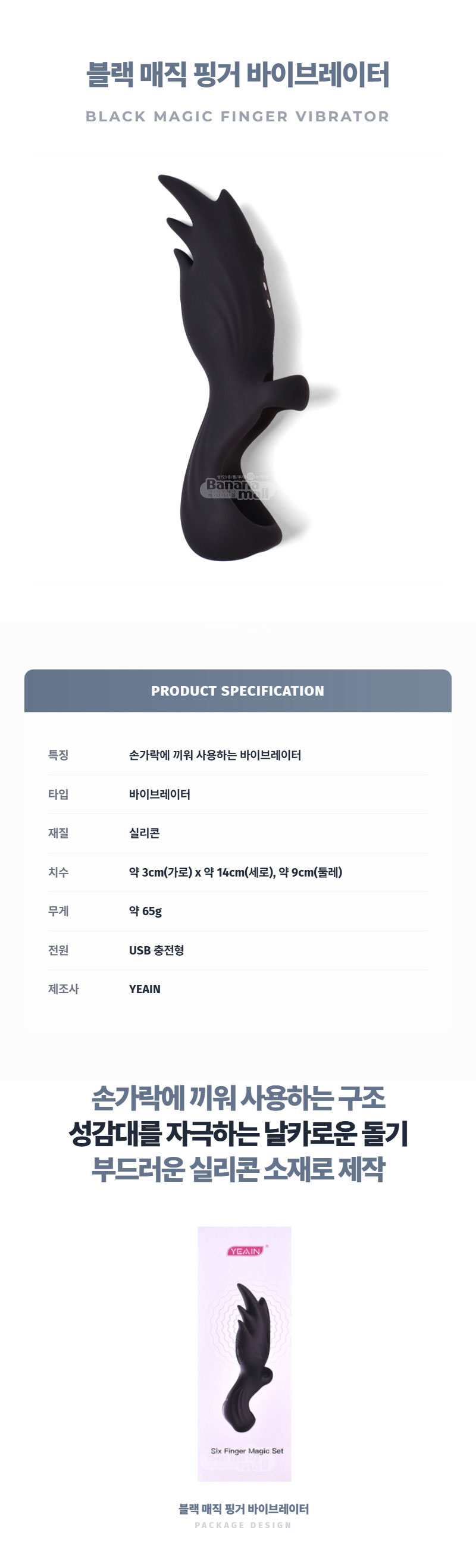 [12단 진동] 블랙 매직 핑거 바이브레이터(Black Magic Finger Vibrator) - 예잉(YY811/6970277072458) (YY)
