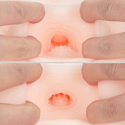 내부는 꿈틀대는 좁은 주름 돌기와 알갱이 돌기 구조로, 확실한 조임을 느끼면서 즐길 수 있습니다.
