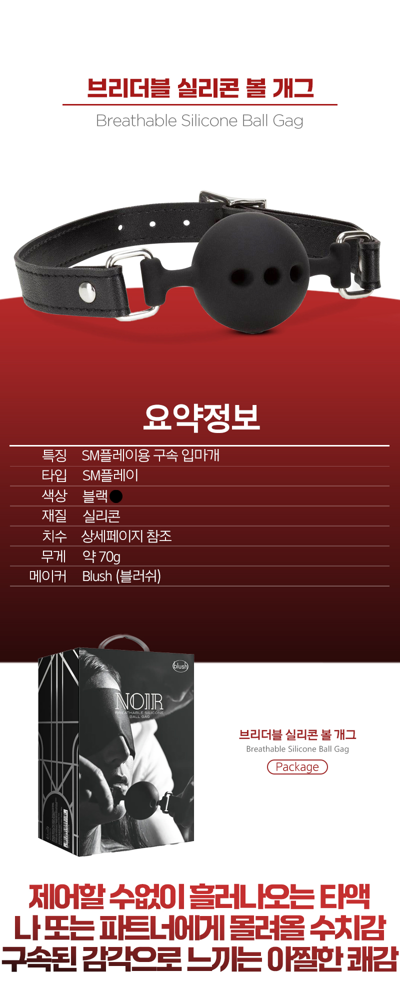[SM플레이] 브리더블 실리콘 볼 개그(Breathable Silicone Ball Gag) - 브러쉬(BL-89105) (BRS)