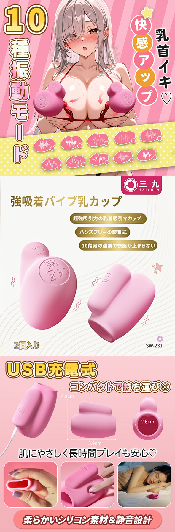 • 유두의 사이즈·형상에 좌우되지 않는 심플함이 자랑. 확실히 흡착시켰다면, 보조적인 쾌감으로서 즐겨봅시다.