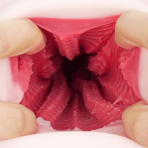 • 2중 구조의 질내에는 큰 세로 주름이 5개나 뻗어 있습니다. 벽면 전체에 V홈도 새겨져, 세로×가로의 왕도적인 자극을 만들어냅니다.