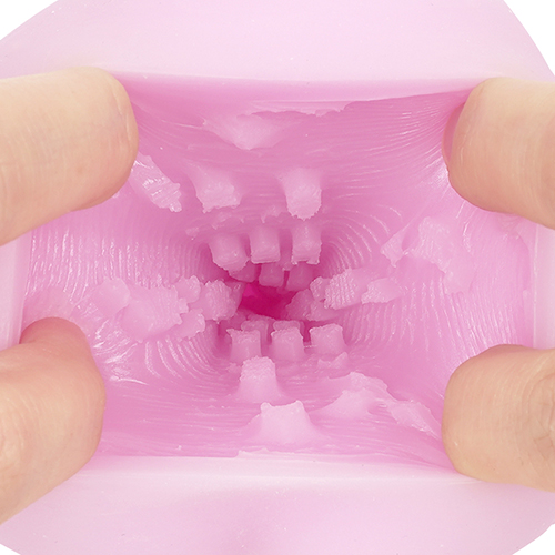 내부 기믹은 톱니가 달린 사각 블록을 삽입구부터 빼곡히 배치하여, 비관통의 밀착성에 의해 조여지고, 부추겨지듯 사정 욕구가 높아져 가는 구조로 되어 있습니다!
