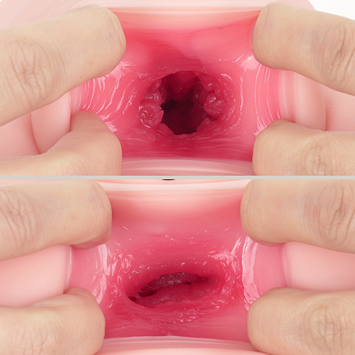 • 홀 직경은 좁게 조이는 타입으로, 진입을 거부하는 듯한 입구가 특징입니다. 2혈 모두 「유사 점막 2층 구조」를 채용하여, 진짜 같은 감촉을 실현. 각각에 개성 있는 기믹을 배치하고 있습니다.
